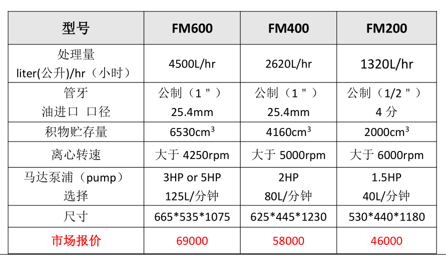 FM 系列離心式凈油機(jī)由底座、轉(zhuǎn)子總成、軸、罩、殼組成。